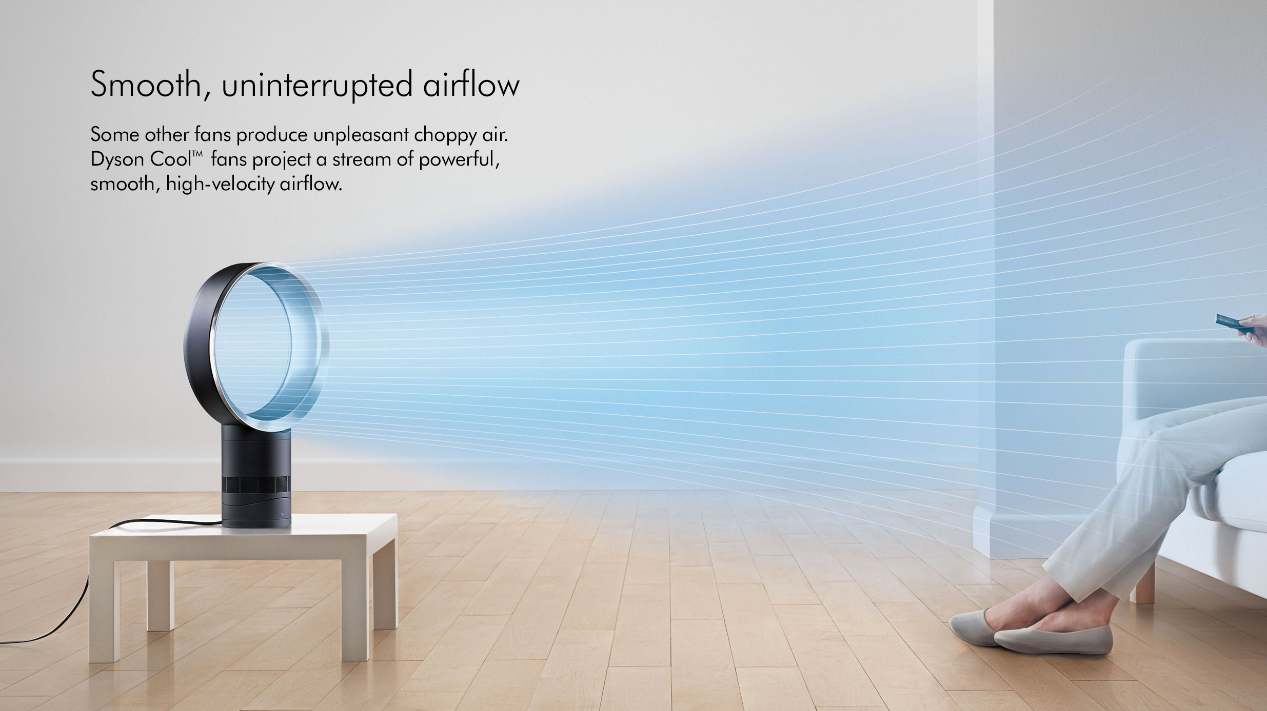 No blades, no choppy air. Air Multiplier™ technology amplifies surrounding air, giving an uninterrupted stream of smooth airflow.