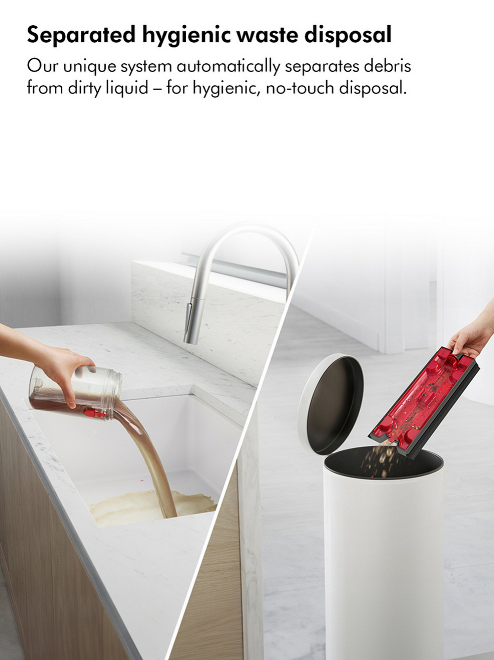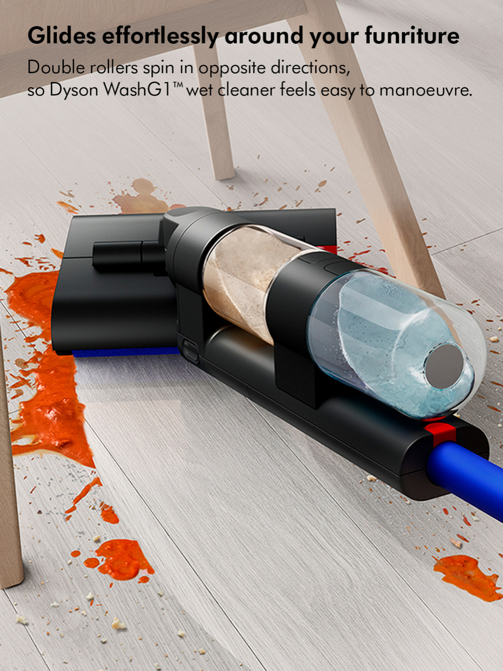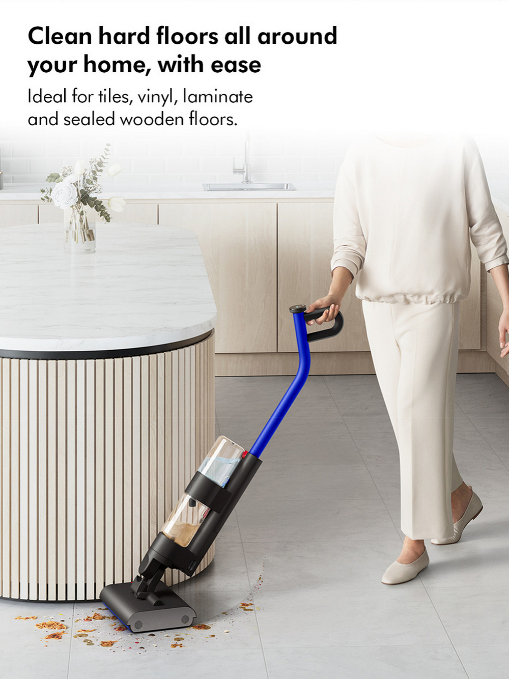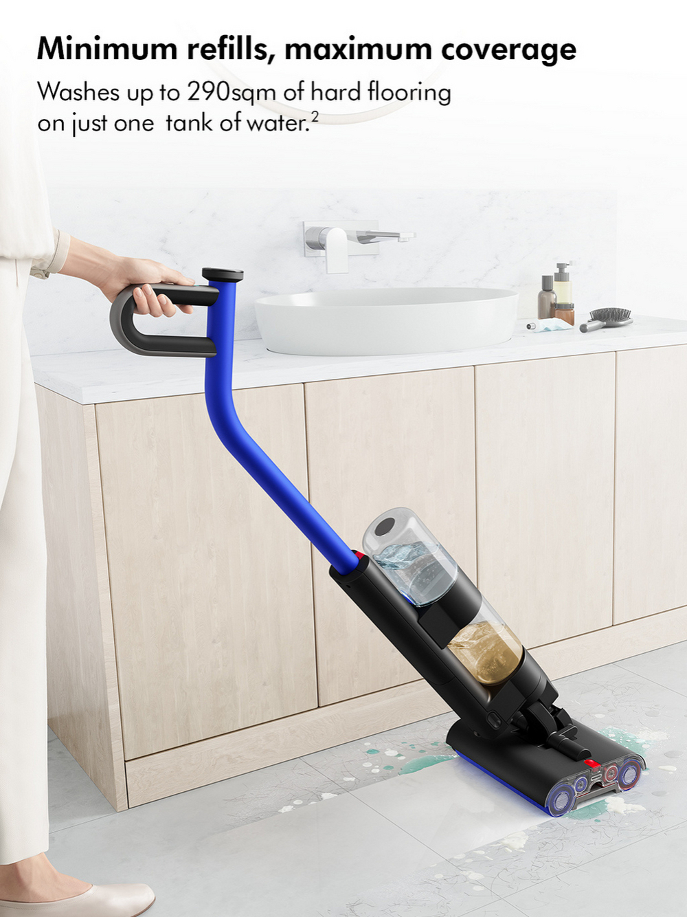 Clean floors here, there, and everywhere using the WASHG1 from Dyson. Designed to clean tiles, vinyl, laminate, and sealed wooden floors, this cleaner easily removes wet and dry dirt, spills, and even tough stains. The tank holds up to 1L of water, so you can clean up to 290sqm of hard flooring in one go. And, it automatically divides wet and dry waste into separate containers, making disposal more hygienic. Use the click-in battery to get up to 35 minutes of run time – plenty of time to clean the bathroom, kitchen, hall and dining area. What’s more, in just 140 seconds, the self-clean cycle flushes the whole system, ready for the next use.
